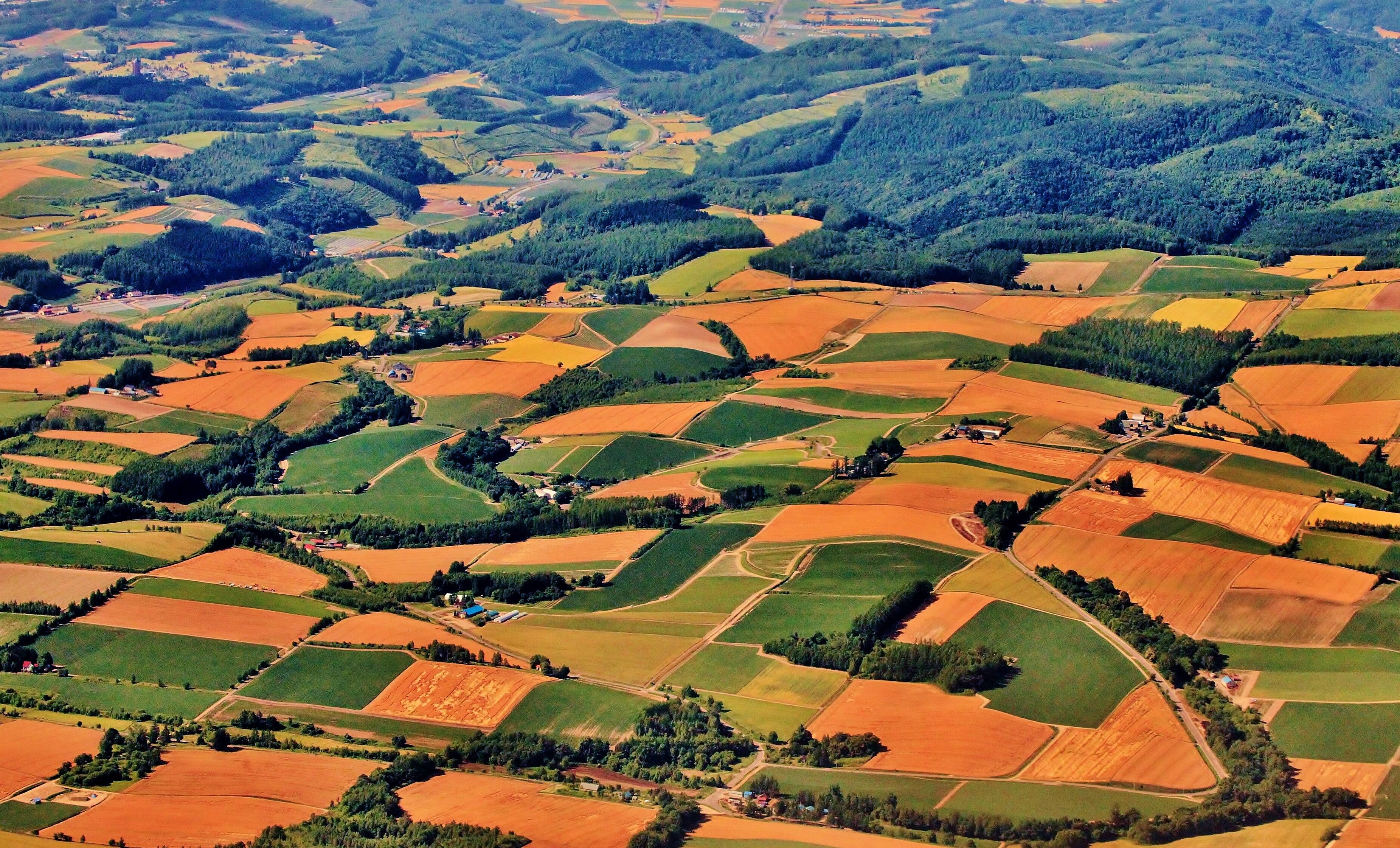 いくつかの作物が織りなす景色はパッチワークのような模様で趣がある。